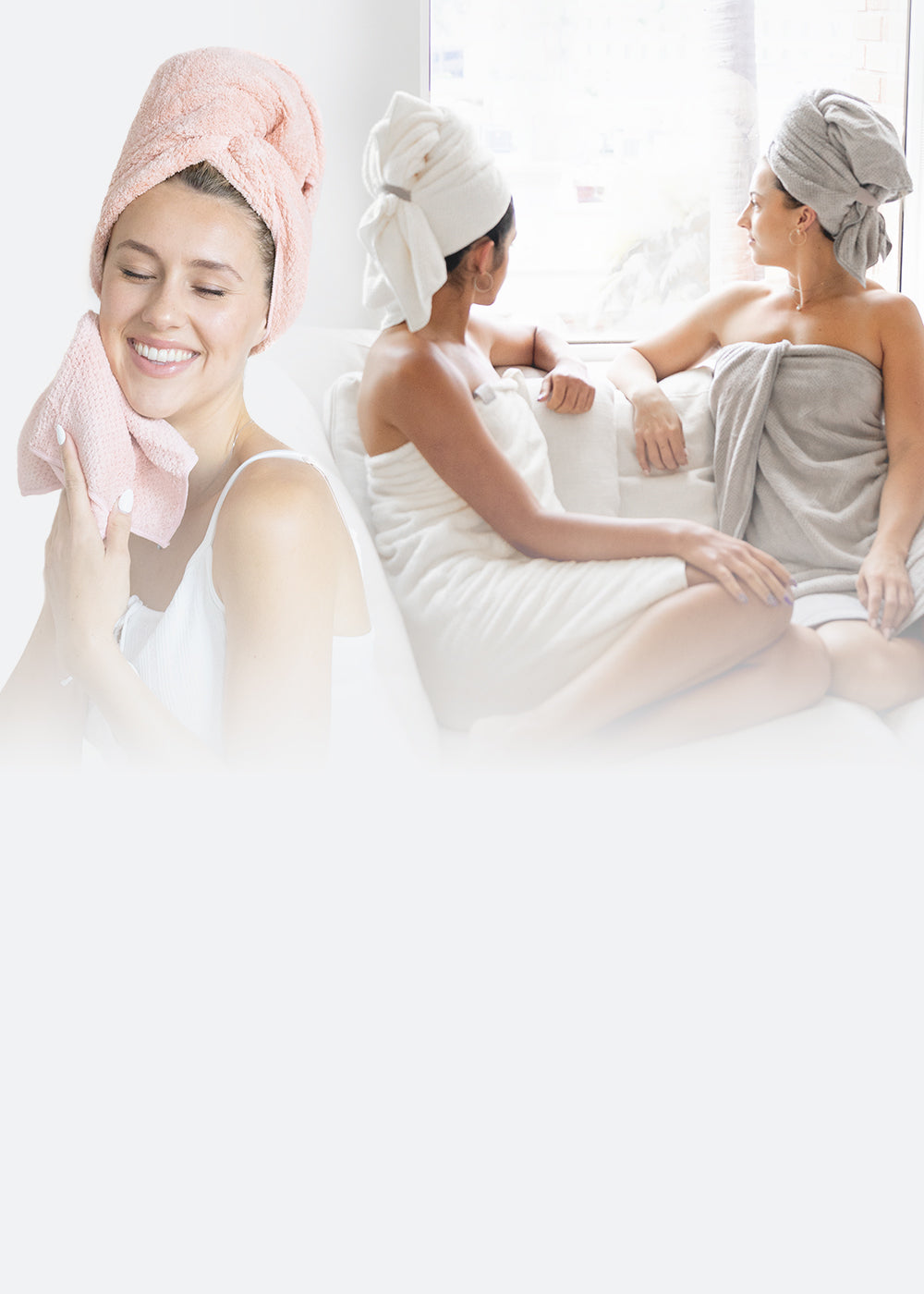 The HERO Hair Towel: effortless wrap, elegant results. Powered by Nanoweave™ to dry hair 50% faster and reduce frizz—no slipping, no tugging, just smooth, polished strands.
